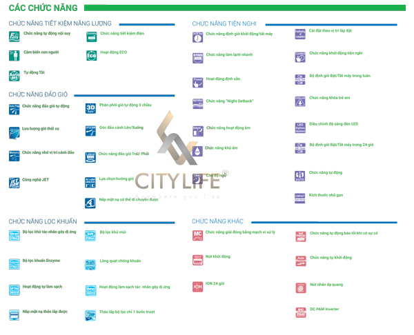 Máy lạnh treo tường được tích hợp đa chức năng, với các nhóm chức năng: