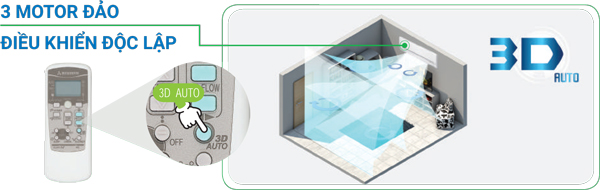 3D AUTO là công nghệ đảo gió 3 chiều với 3 chế độ quạt độc lập riêng biệt, 1 cánh đảo dọc và 2 cánh đảo ngang, vận hành chỉ bằng 1 nút nhấn. Điều này giúp cho luồng gió có thể thổi đến những nơi xa nhất trong phòng và êm ái.