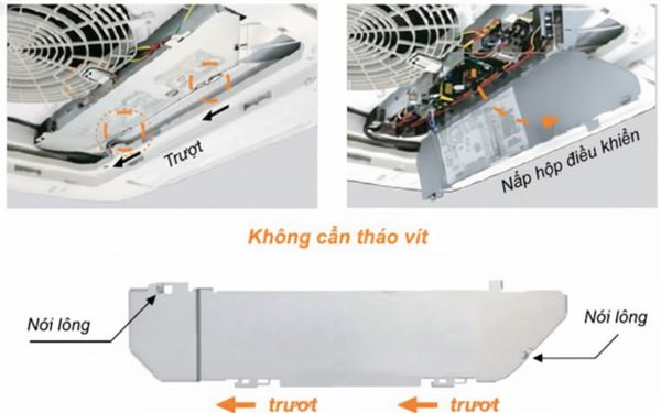 Có thể trượt và mở nắp hộp điều khiển mà không cần tháo các ốc vít.