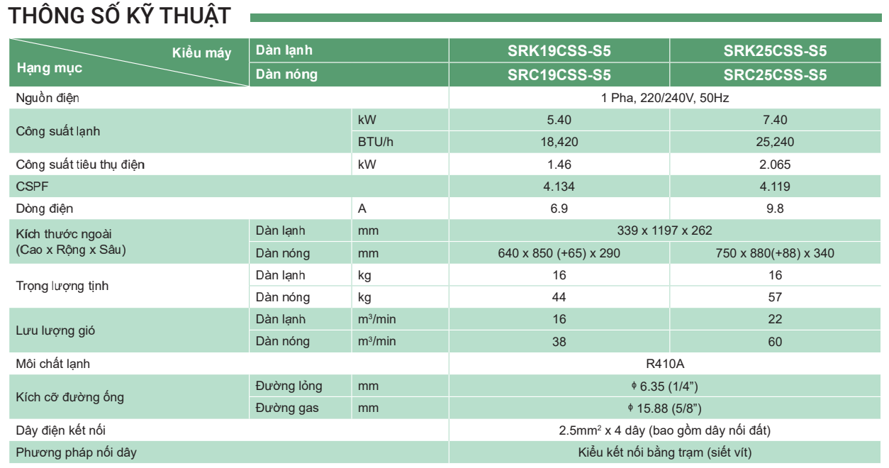 - Điều hòa một chiều SRC/SRK19CSS-S5 mới có thể điều khiển được điện áp và tần số hoạt động của máy nén, từ đó giảm sự tiêu thụ điện tối đa, nhưng hiệu suất làm lạnh vẫn rất mạnh và nhanh.