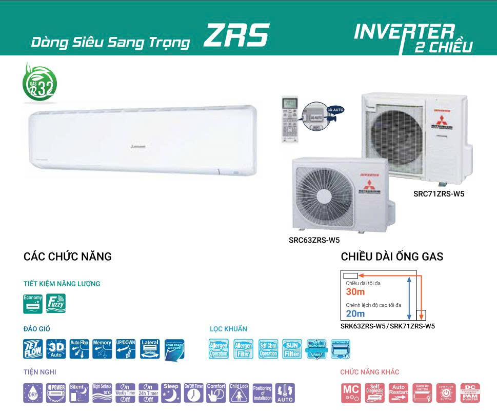 Ưu điểm của Dàn lạnh treo tường điều hòa Multi Mitsubishi SRK71ZRS-W5 24.000BTU