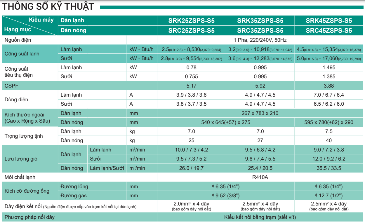 Với công suất 18.000 Btu/h model SRK45ZSPS-S5 điều hòa hai chiều Inverter hù hợp với những căn phòng có diện tích dưới 30m2 như: phòng khách, quán ăn, phòng ngủ,...