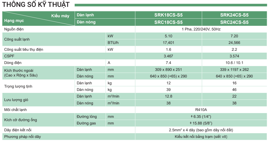 (*) Tính năng này chỉ có tại Model SRK24CS-S5. Không có đối với Model SRK18CS-S5